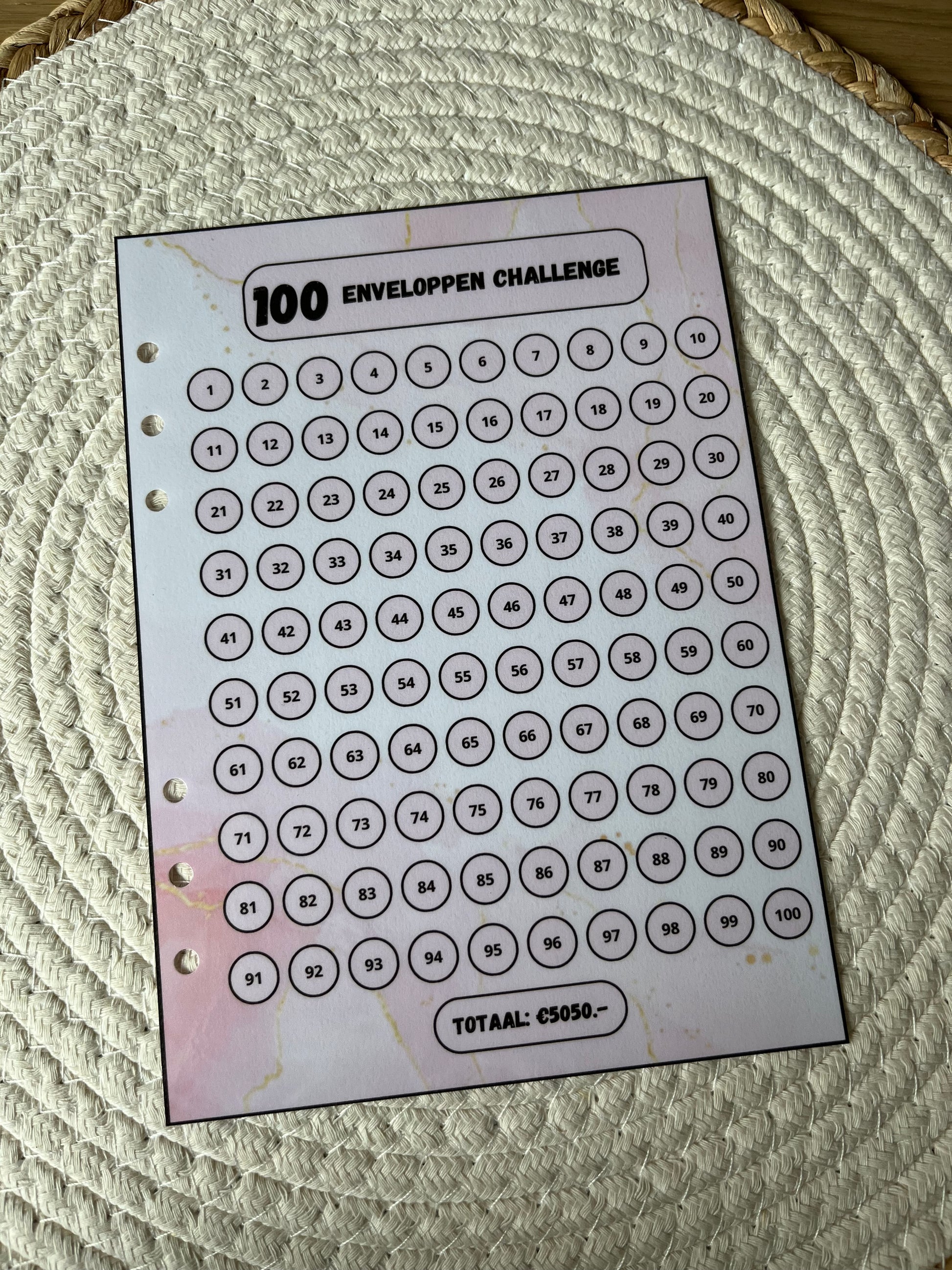 Deze 100 enveloppen challenge is te gebruiken in een A5 map