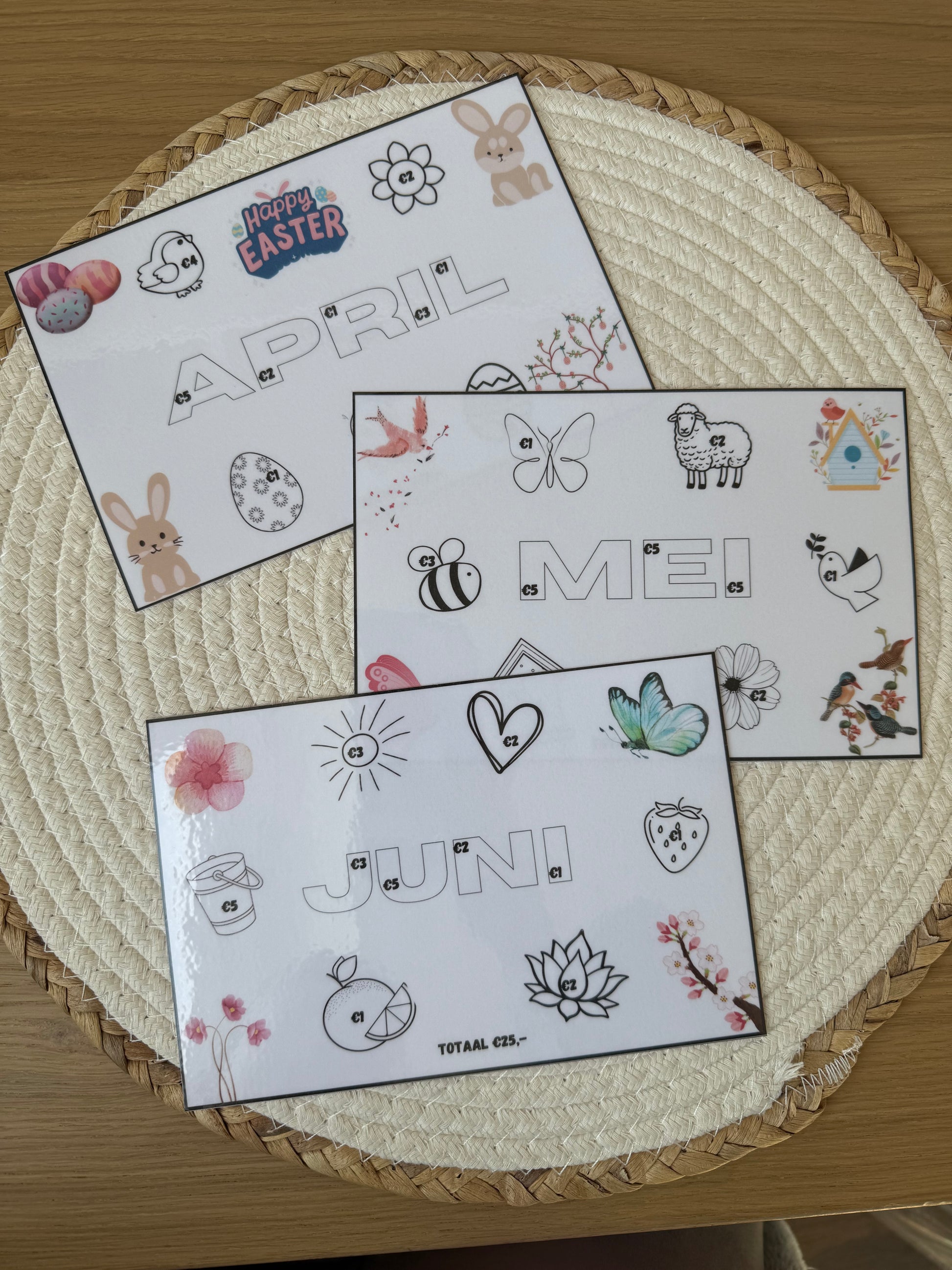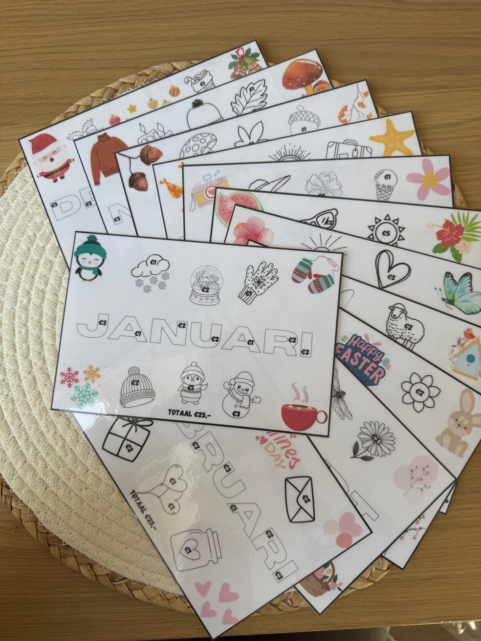 Met deze leuke nieuwe 12 maanden set spaar je elke maand €25.00 weg. Elke maand een ander thema en andere plaatjes. Super leuke challenge om elke maand €25.00 over te houden voor een doel naar keuze.