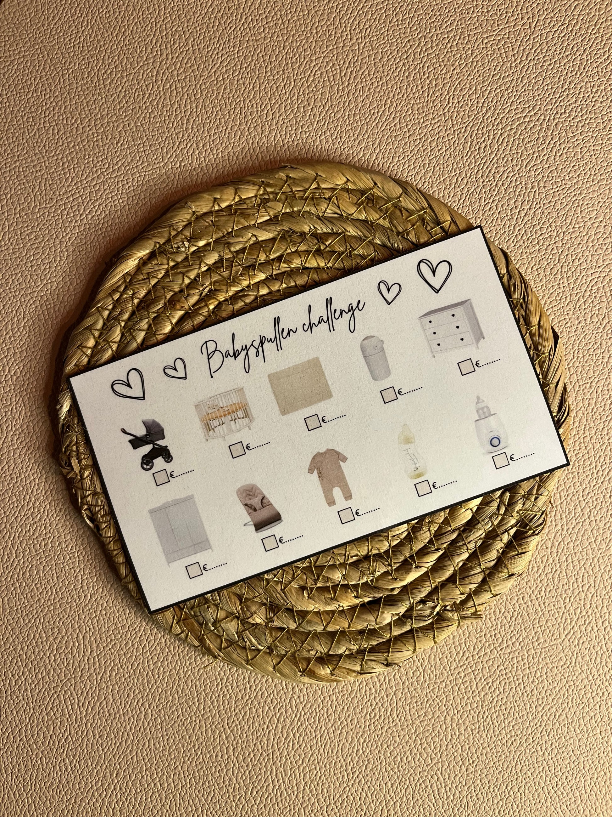 Met deze challenge spaar je voor je babyspullen. Je kan zelf het bedrag invoeren. Ook super handig dat je kan zijn of je alle spullen in huis heb.