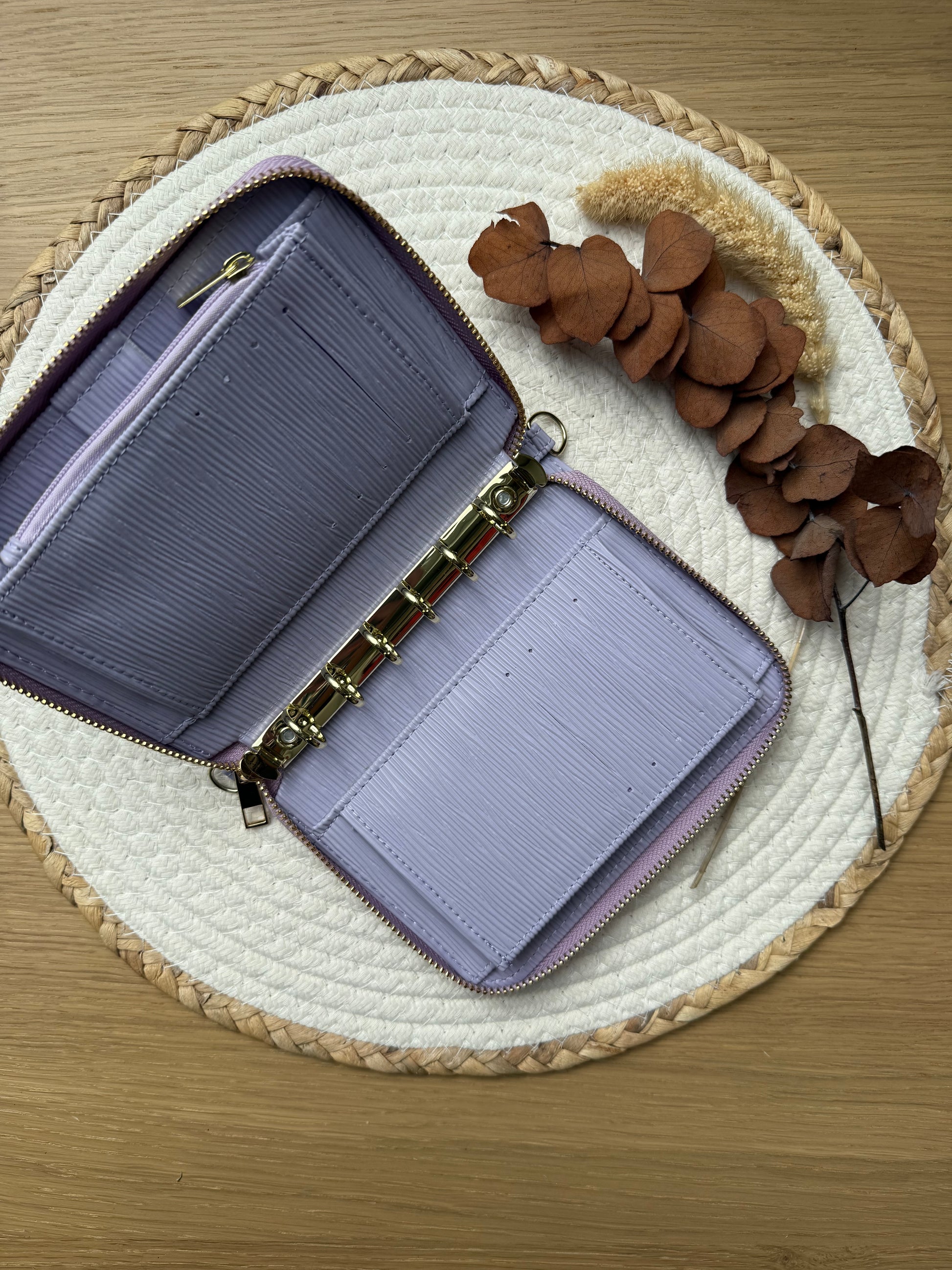 Deze elegante binder is jouw perfecte metgezel voor onderweg. Het enveloppe-ontwerp met ritssluiting zorgt voor een veilige en stijlvolle manier om je geld te bewaren. De unieke ribbelstructuur geeft de binder een moderne en luxueuze uitstraling, terwijl het compacte A7-formaat moeiteloos in je tas past.