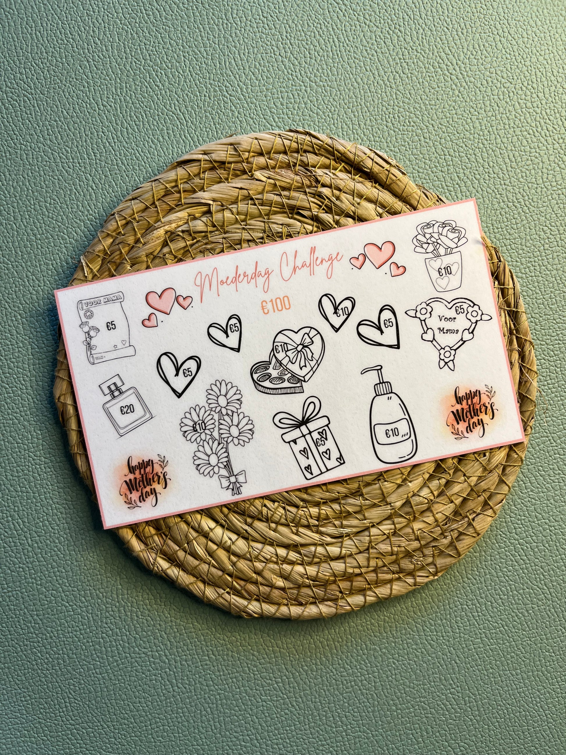 Spaar met deze challenge €100 voor je liefste moeder. Met deze verschillende plaatjes maak je het sparen nog veel leuker.