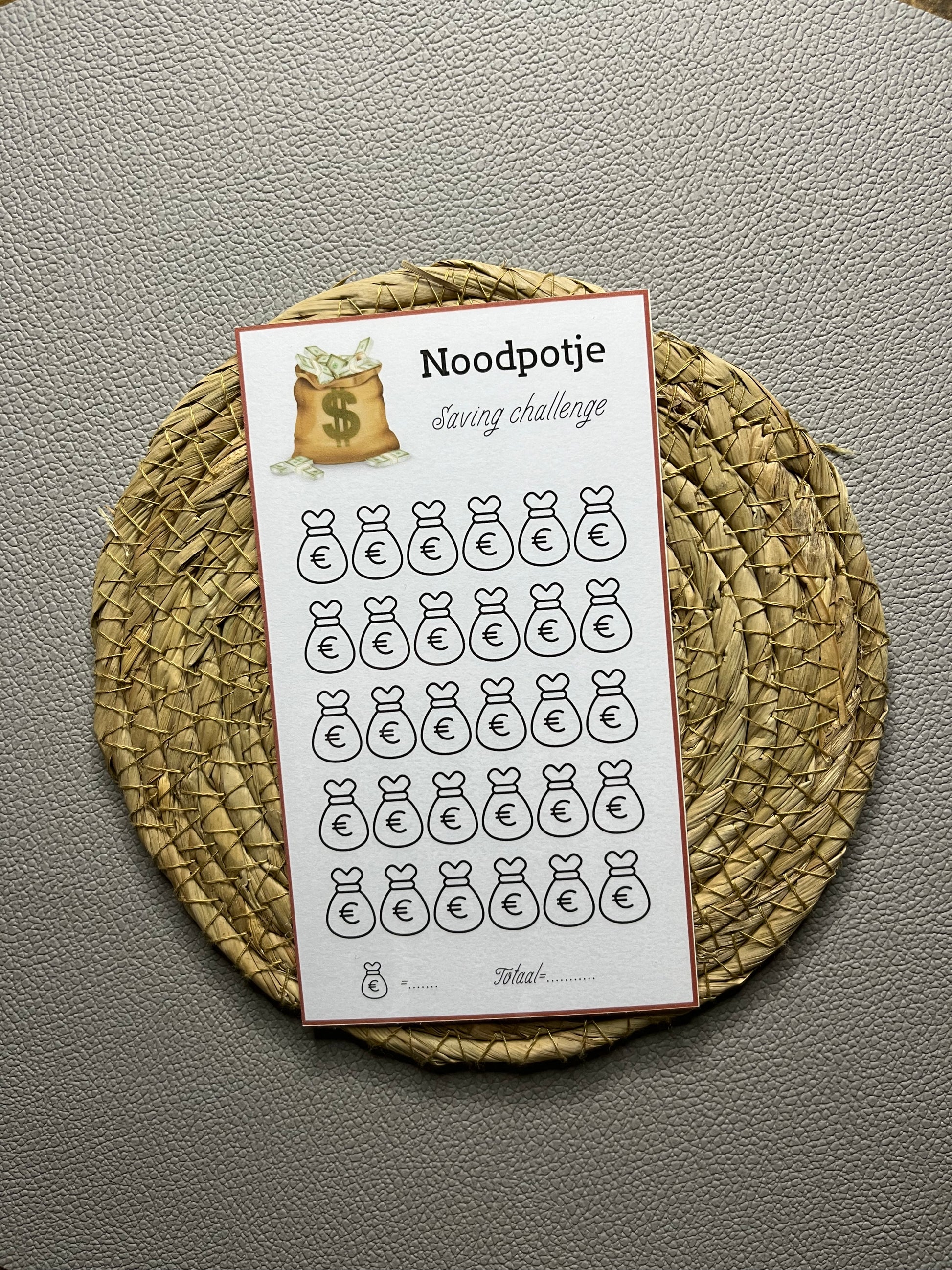 Deze challenge heeft 30 vakjes. Je kan zelf bepalen welk bedrag je spaart per vakje en wat dan het totaal bedrag word. Dus spaar je graag €1 euro per vakje dan kan dat. Maar spaar je graag €20 euro per vakje, dan kan dat natuurlijk ook.