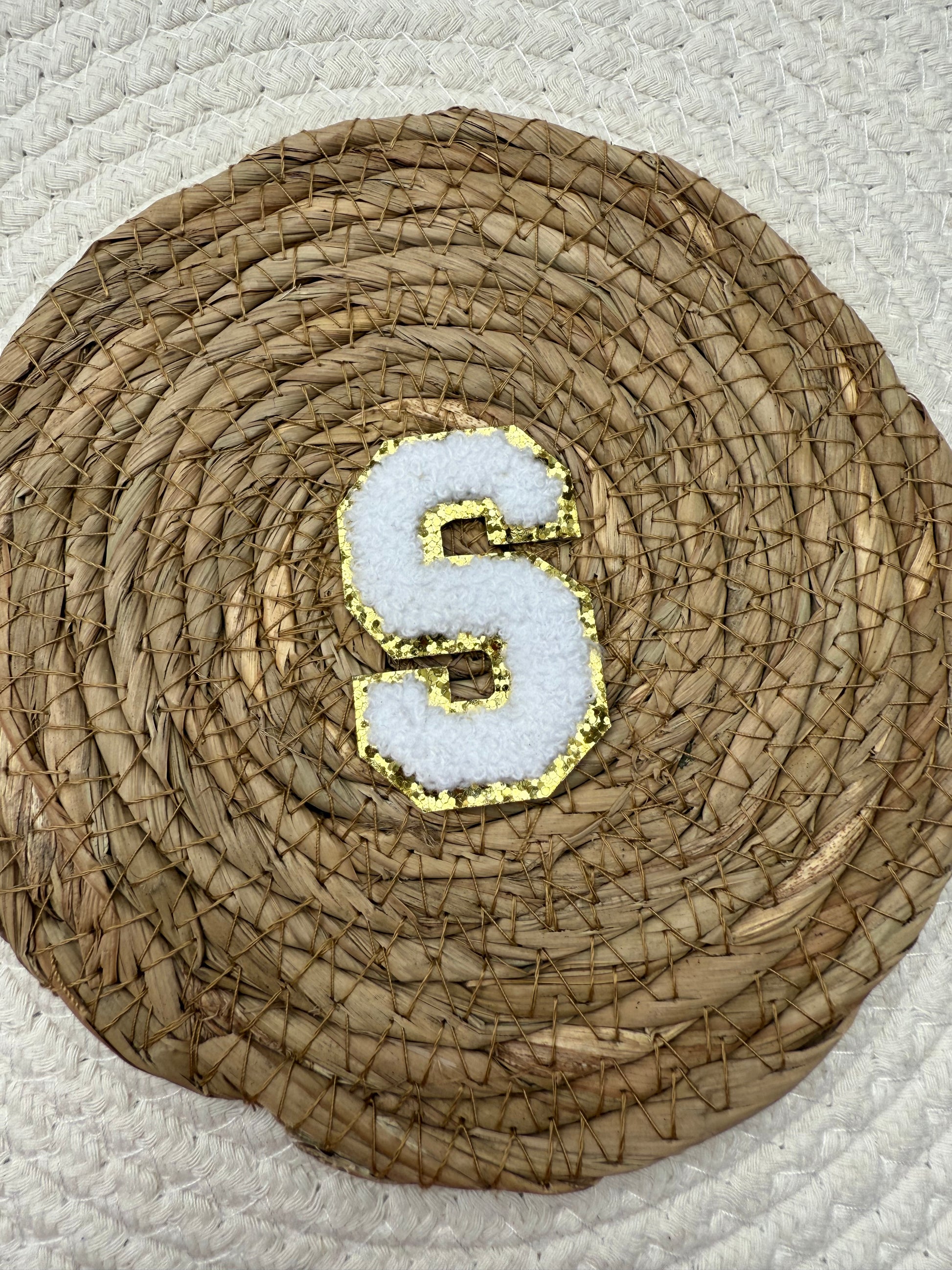 afmeting: ongeveer 6 cm bij 6 cm de ene letter is groter dan de andere letter.