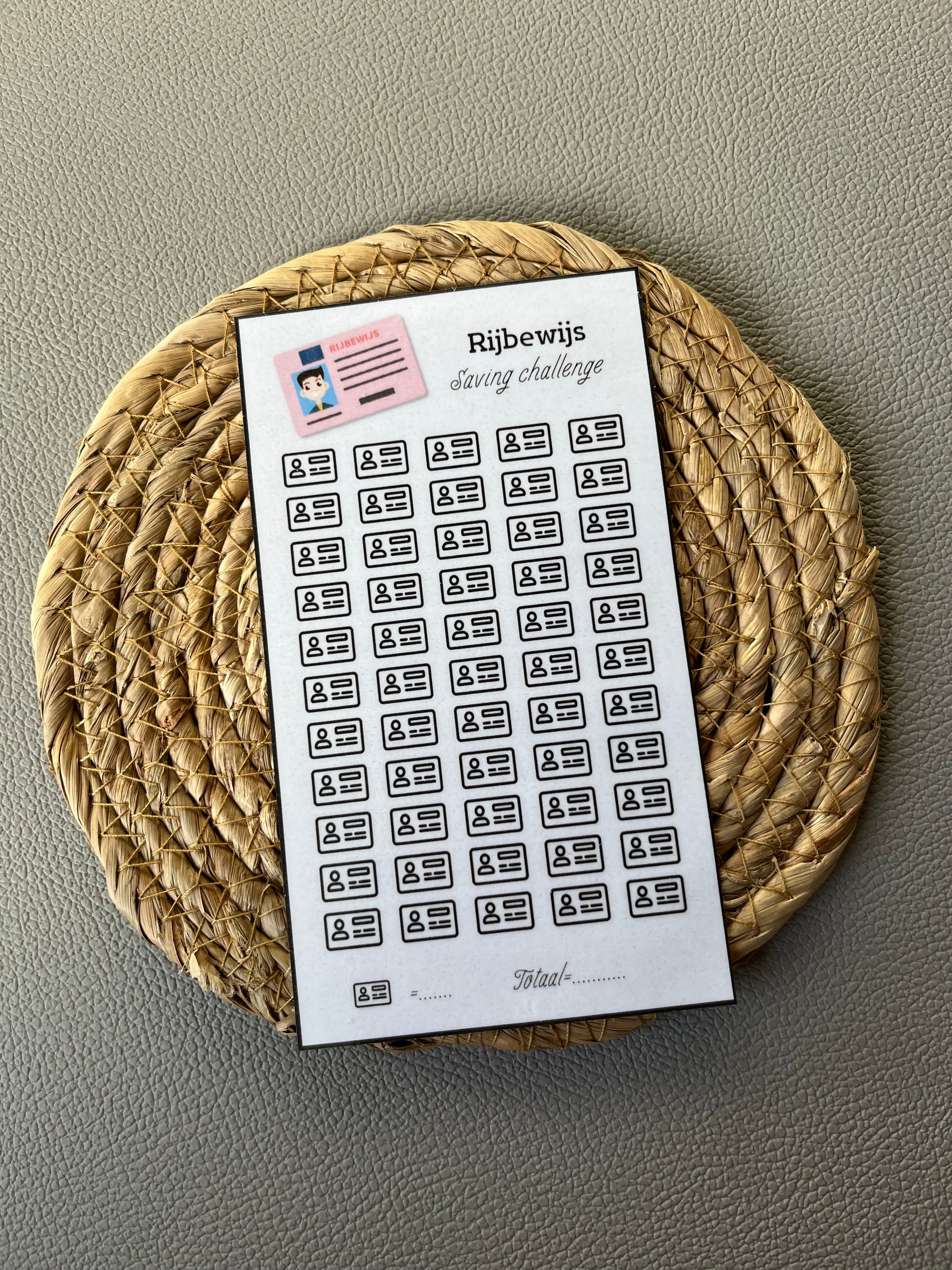 Deze challenge heeft 55 vakjes. Je kan zelf bepalen welk bedrag je spaart per vakje en wat dan het totaal bedrag word. Dus spaar je graag €1 euro per vakje dan kan dat. Maar spaar je graag €20 euro per vakje, dan kan dat natuurlijk ook.