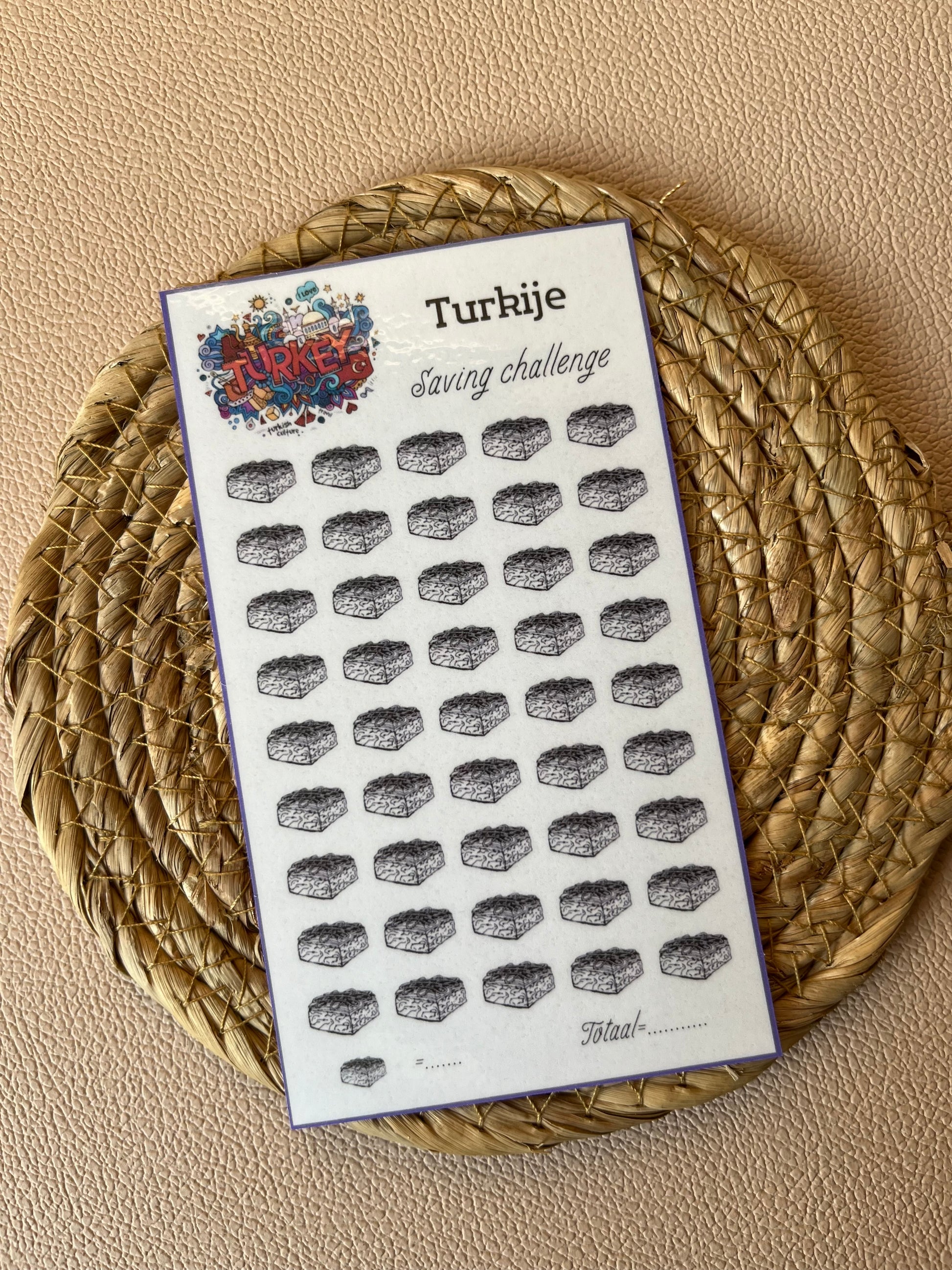 Deze challenge heeft 45 vakjes. Je kan zelf bepalen welk bedrag je spaart per vakje en wat dan het totaal bedrag word. Dus spaar je graag €1 euro per vakje dan kan dat. Maar spaar je graag €20 euro per vakje, dan kan dat natuurlijk ook.