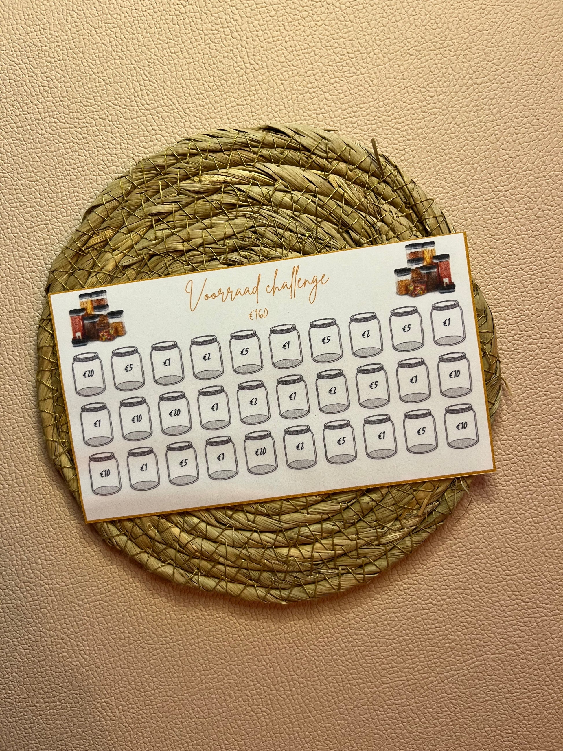 Spaar €160 euro met deze voorraad challenge. Elke voorraad pot heeft een ander bedrag tussen de €1 en de €20 euro.