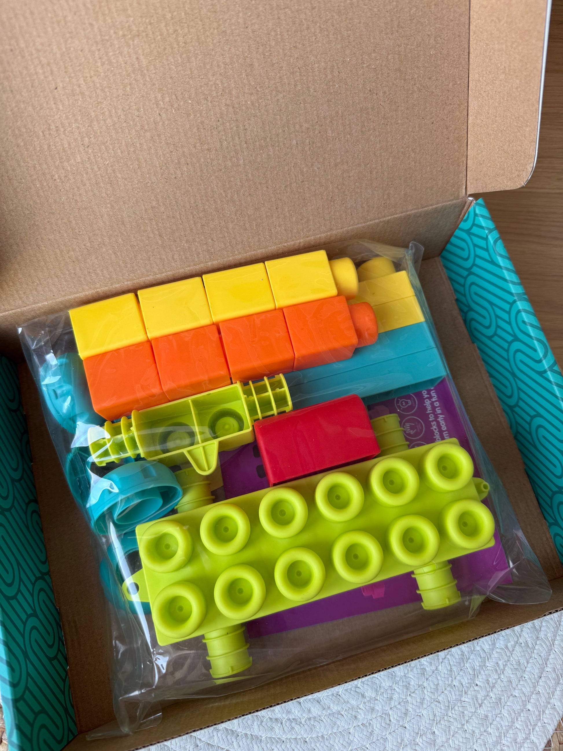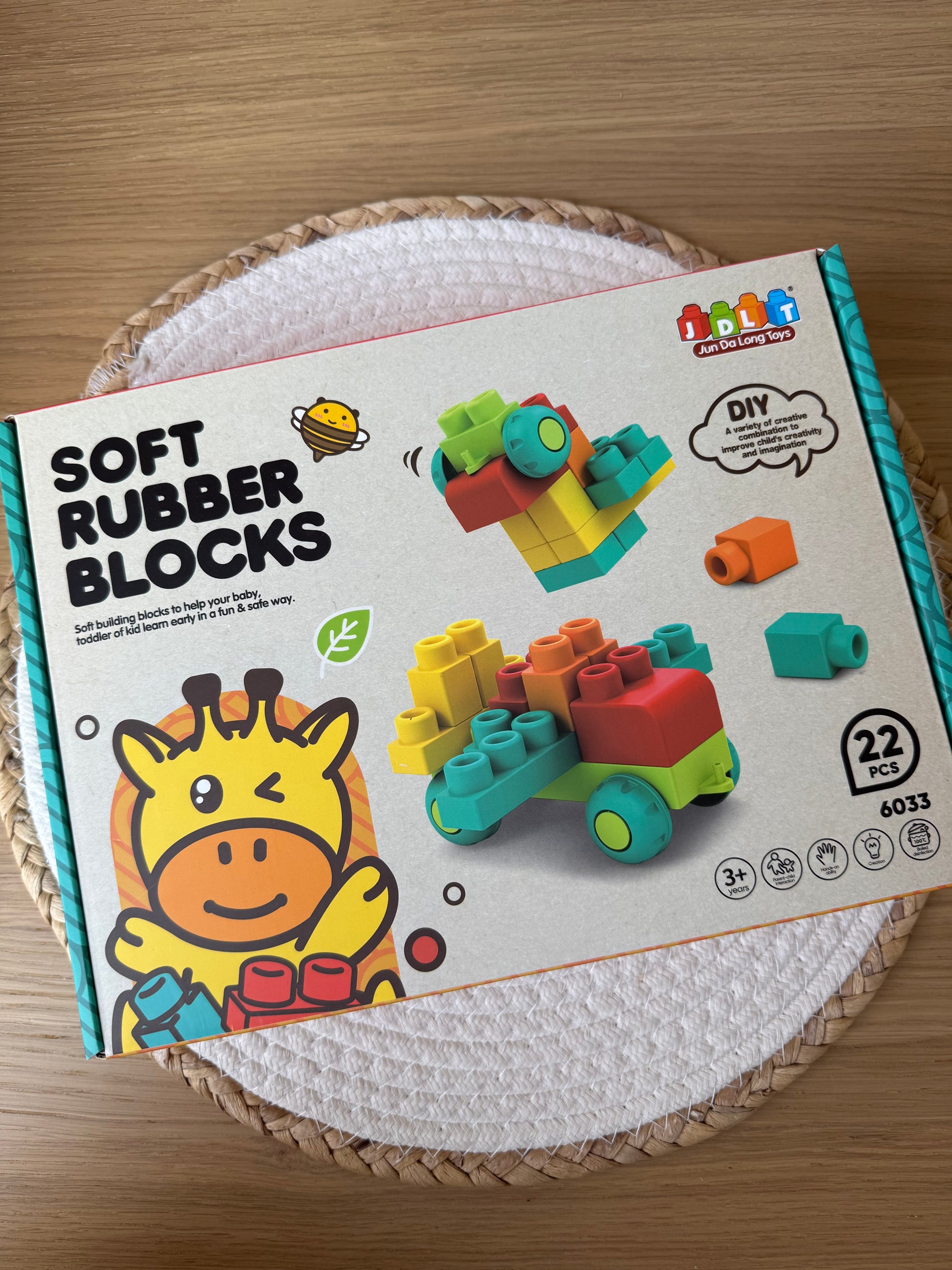 Deze zachte rubberen bouwblokken helpen je peuter bij de kleine motorische ontwikkeling.